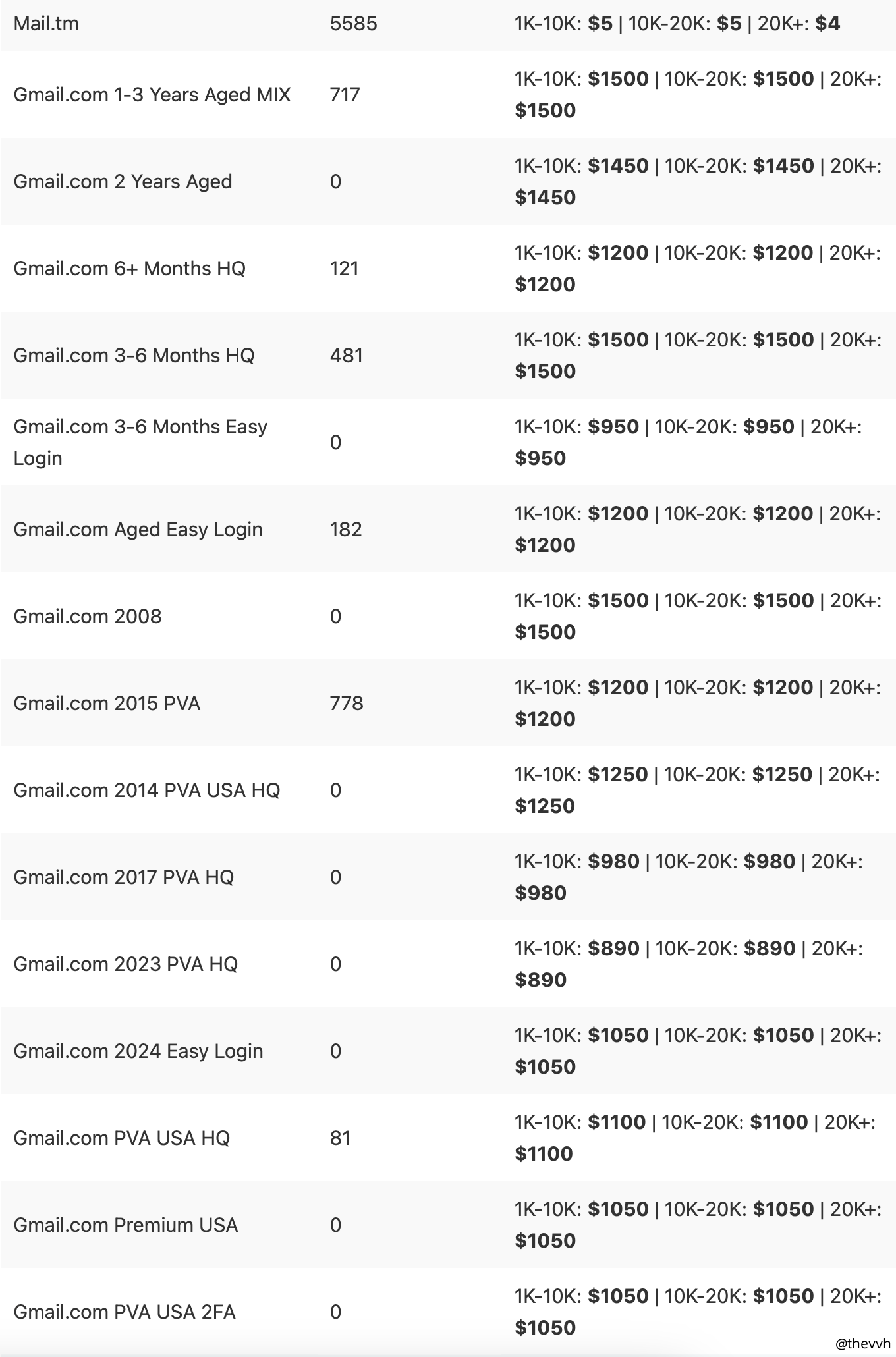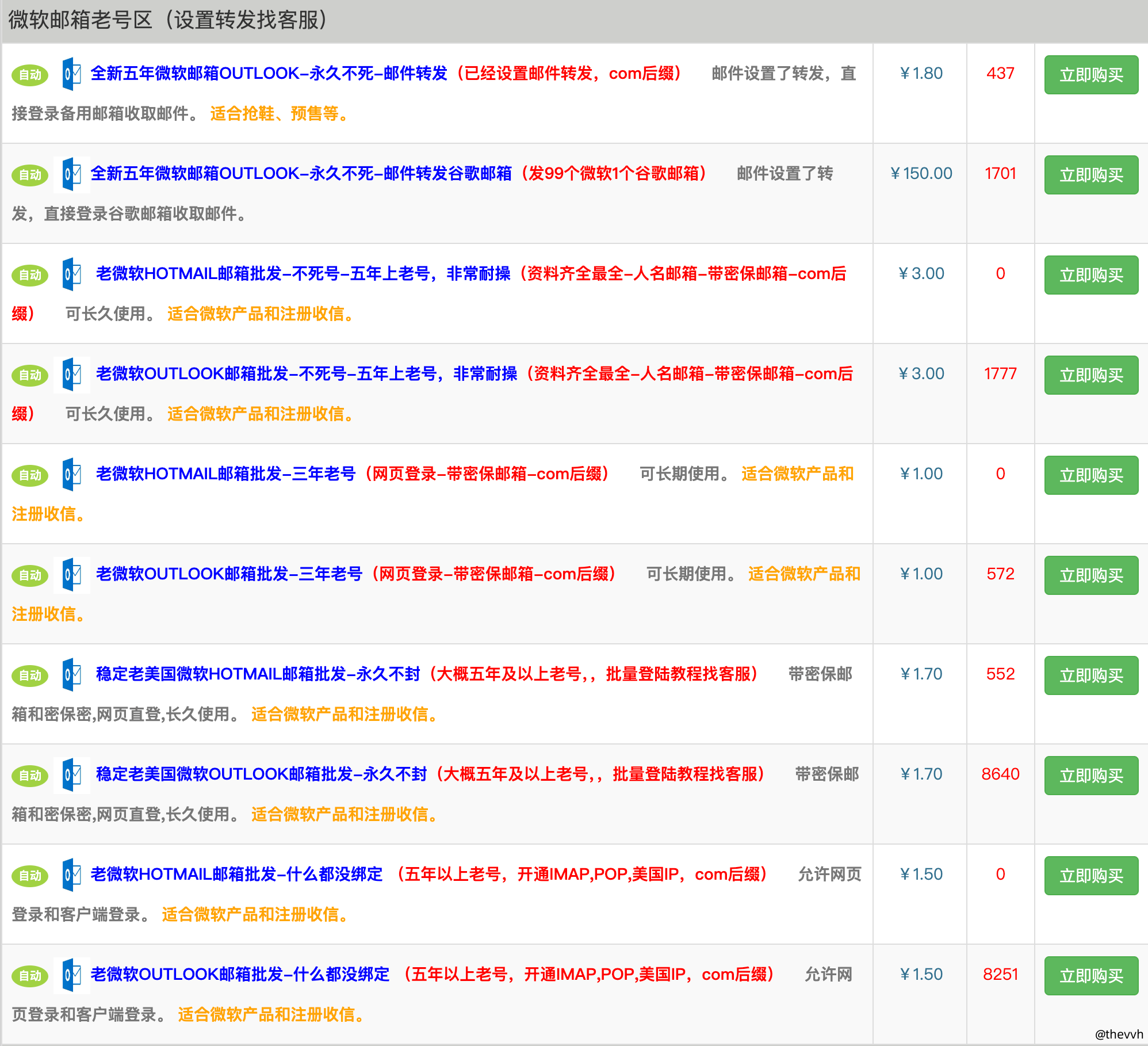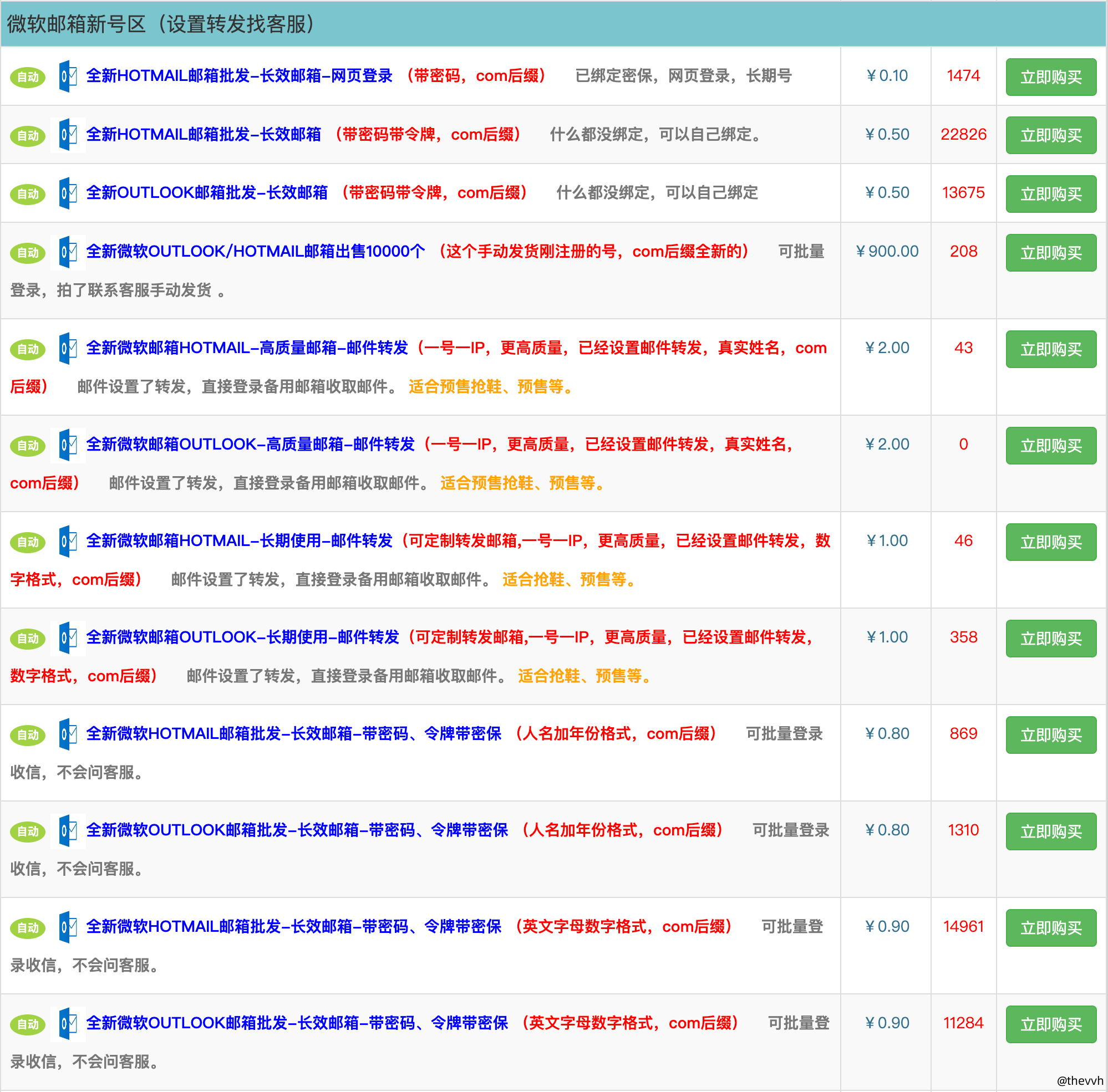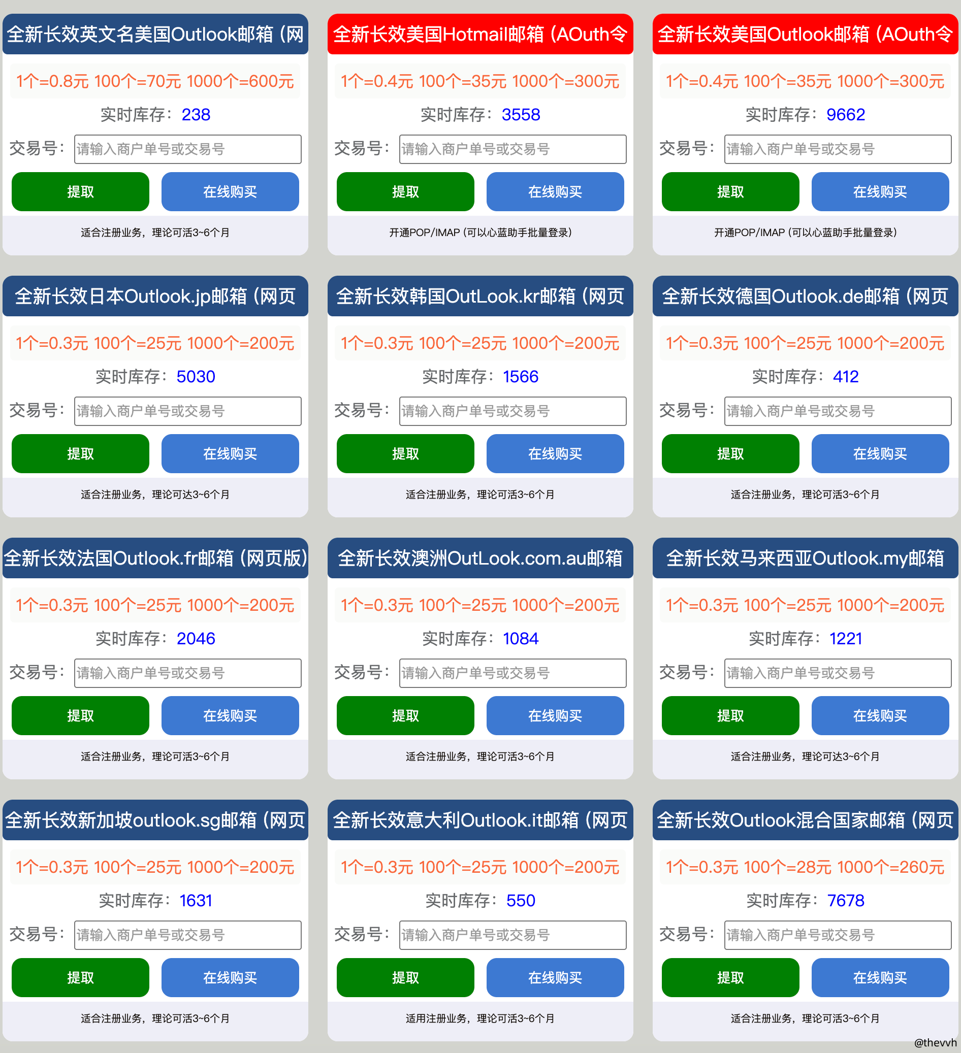 谷歌邮箱,微软邮箱,FB账号,TK账号,广告账户,TWITTER账号,INS账号,TG账号。